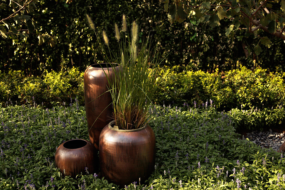 从软装的角度,我们思考的是如何将这种空间转换的序列感加强,如何将周边环境的旷远意境延伸到场地内,如何将空间有限的别墅庭院处理的更细腻更有生机,如何通过庭院软装加强样板区不同户型的风格区分度,营造丰富的客户体验。