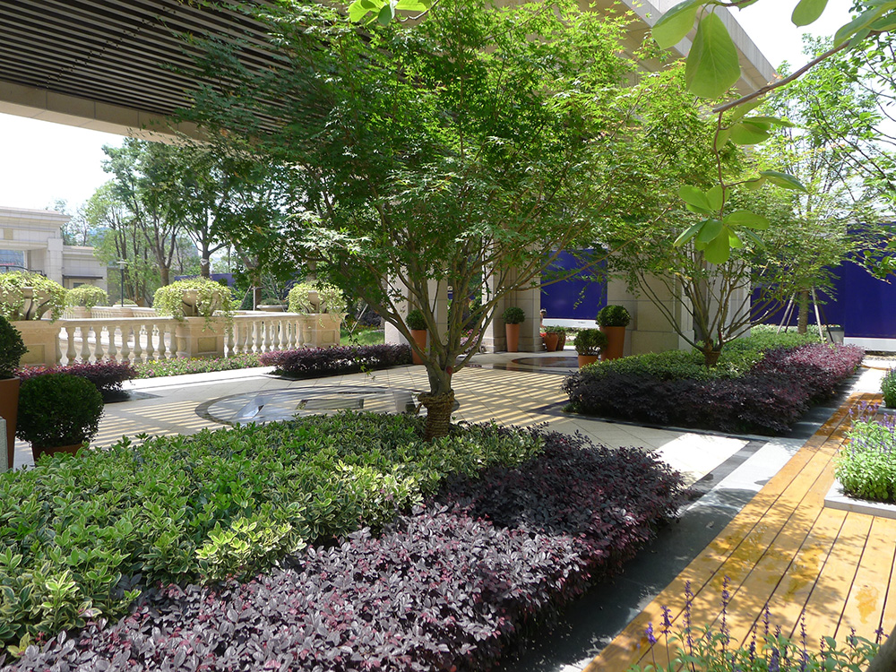 江湾萃璟墅景观的整体定位为富有高贵文化气质的艺术性住宅景观,将欧式风情表现与中国传统的文化气质相结合,来体现社区的高贵浪漫优雅的居住环境。 社区的一大特色就是它的巷子景观,运用植物造景,使每个巷子都有自己的季节主题特色,例如春暖花开的迎春巷、樱花巷、玉兰巷,夏季花繁叶茂紫薇巷、合欢巷,秋季芳香四溢硕果累累的桂花巷、含笑巷、香柚巷,冬季常绿的香樟巷等等。创造整个社区四季有花,四季常绿的景观效果。