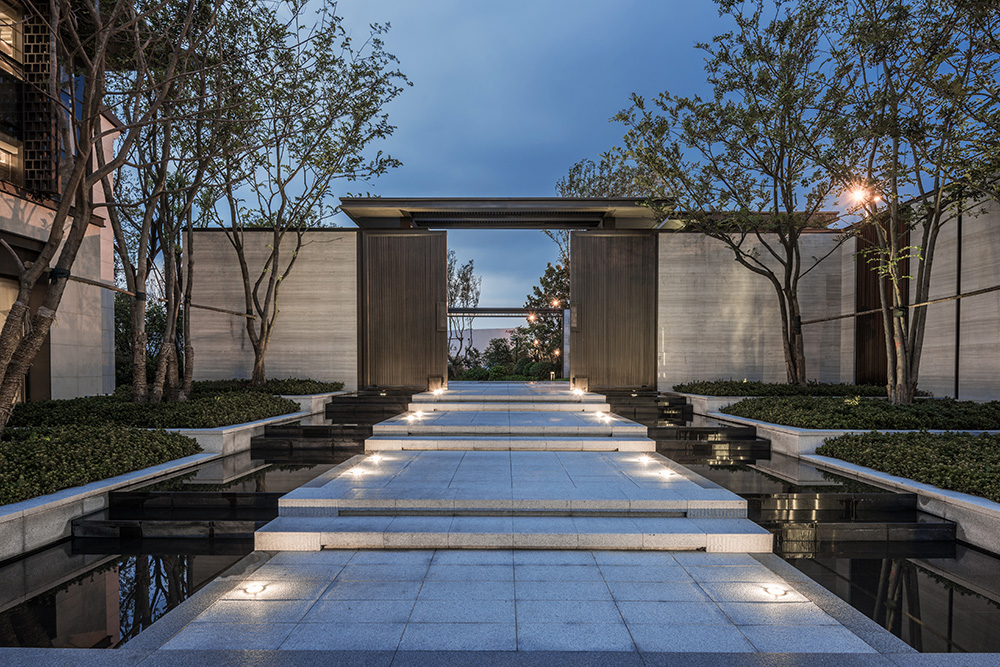 以门、堂、庭、亭、园五个空间依次阐述示范区的浏览动线,整体贯穿“雅致书院·禅意人居”的设计题眼,打造势、贵、仪、尊、礼、雅、乐、趣、感、悦十重游览体验。