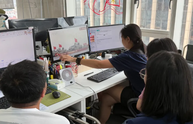 ▴ 奥雅股份在集团总部播放阅兵仪式直播