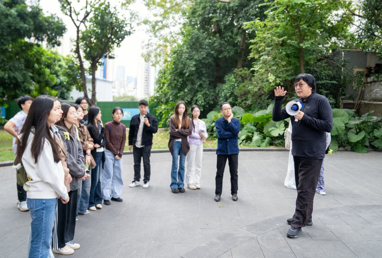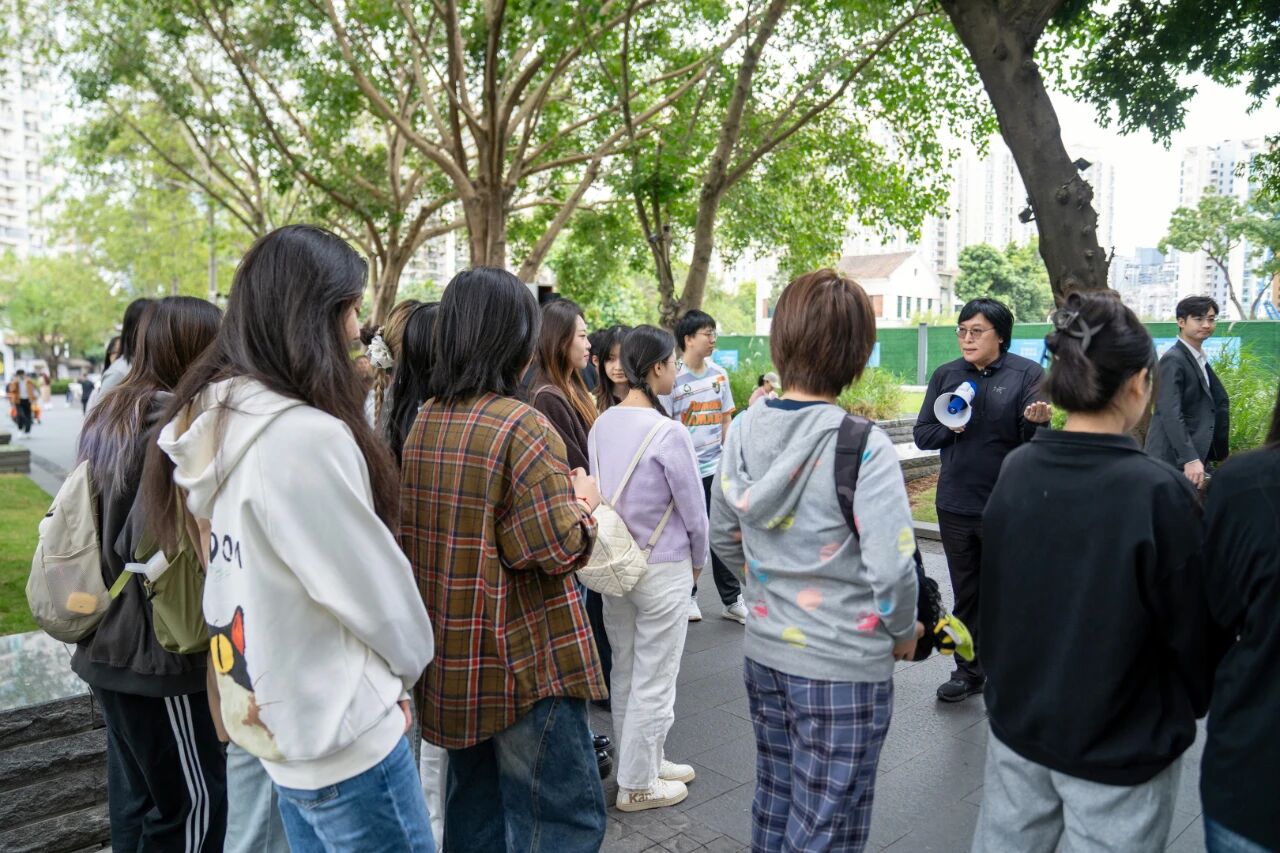 除了创新的设计理念,李宝章先生还详解了设计中的“取舍之道”,比如因现场条件调整坡度设计、基于文化考量优化水景方案等实战经验,为学生们提供了宝贵的行业参考。理论讲解与实地考察相结合的方式,让学生们直观感受到,城市更新不是脱离现场的“纸上谈兵”,而是扎根真实场景的精细化创作。而这一切的起点,始终是“人站在这里的真实感受”。