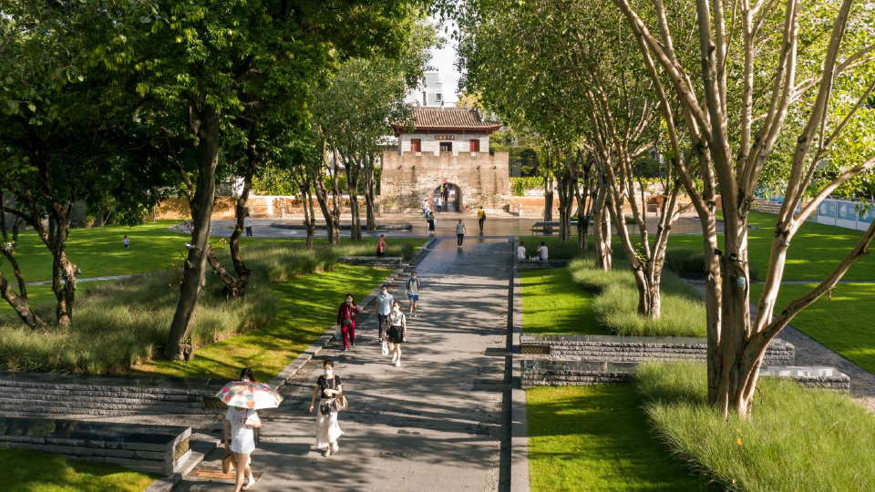 他指出,设计的最终目标是让人们“愿意走进来、停下来、留下来”。为此,设计团队打破物理阻隔,拓宽通行空间,让访客自然放松、主动逗留;铺地设计暗藏“行走节奏”,生活街区用横向铺地放缓脚步,通行路段以纵向铺地提升效率;灯光则隐藏于缝隙之中,既保护古城风貌又保障夜间活动安全,让历史与现代在光影间和谐对话。