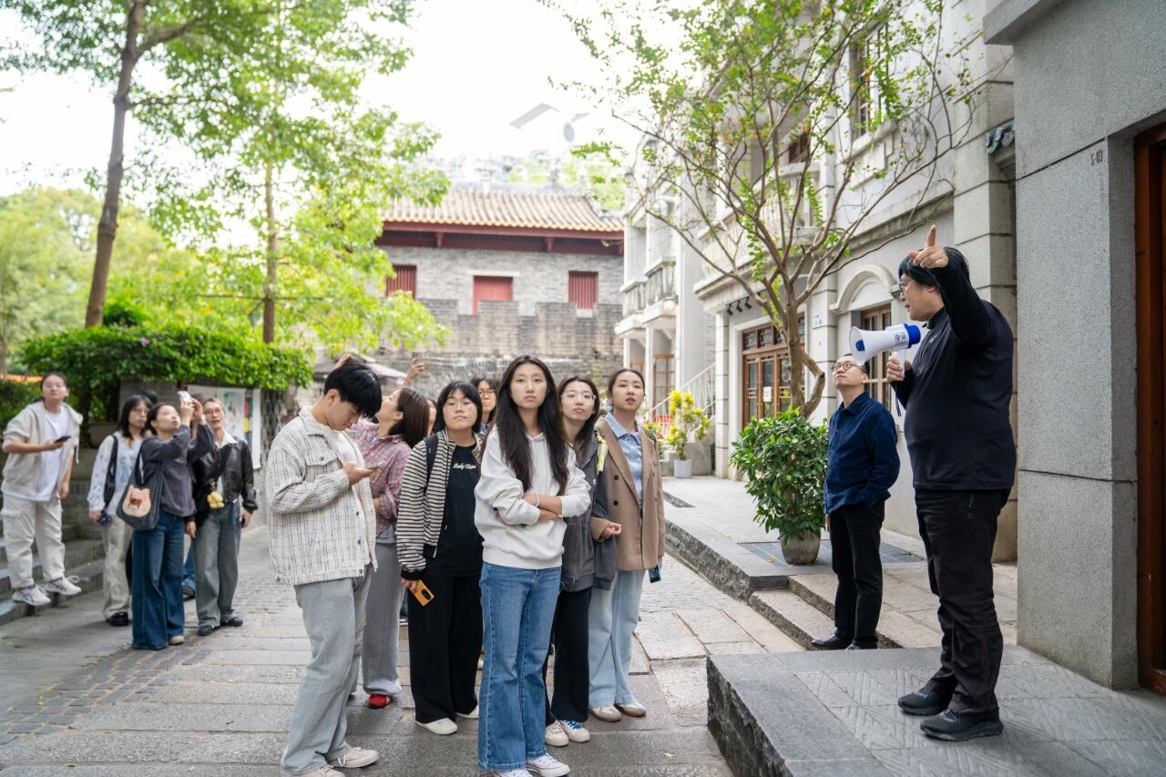 在本次调研课堂上,李宝章先生带领学生们沿着南头古城南门公园、南城门广场、口袋公园等核心景点,以“边走边讲”的沉浸式教学模式,拆解每一处设计细节背后的深层逻辑与独特巧思。