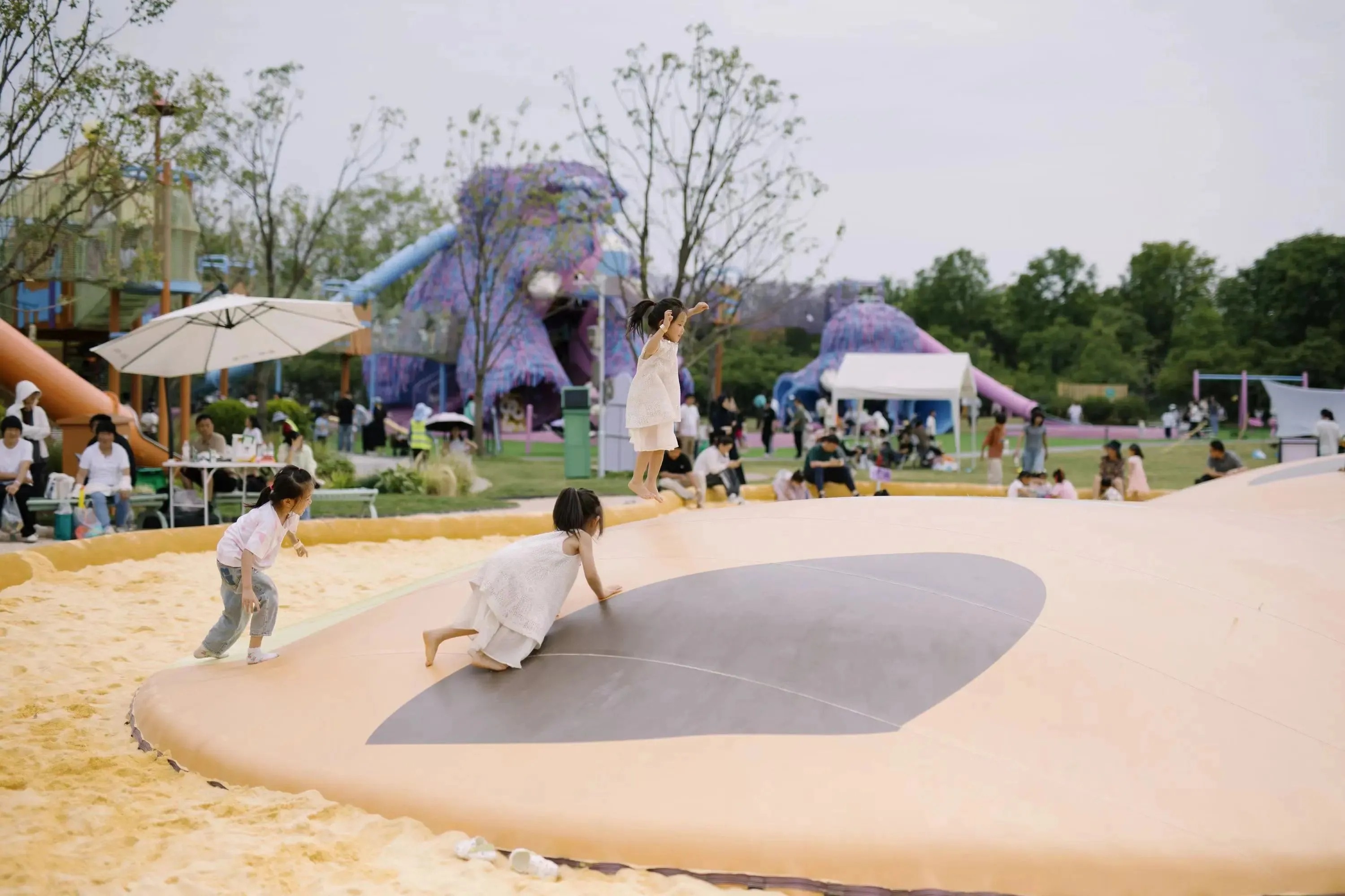 在园区结构上,奥雅设计团队将园区划分为苑苑古象、迷雾水溪、神奇树屋、流水淘金等十二大主题板块,形成“环状探索+节点体验”的游览动线。在这里,孩子们在丛林剧场感受自然魅力,在蹦蹦云体验跳跃乐趣,于自然中激发无限创造力。