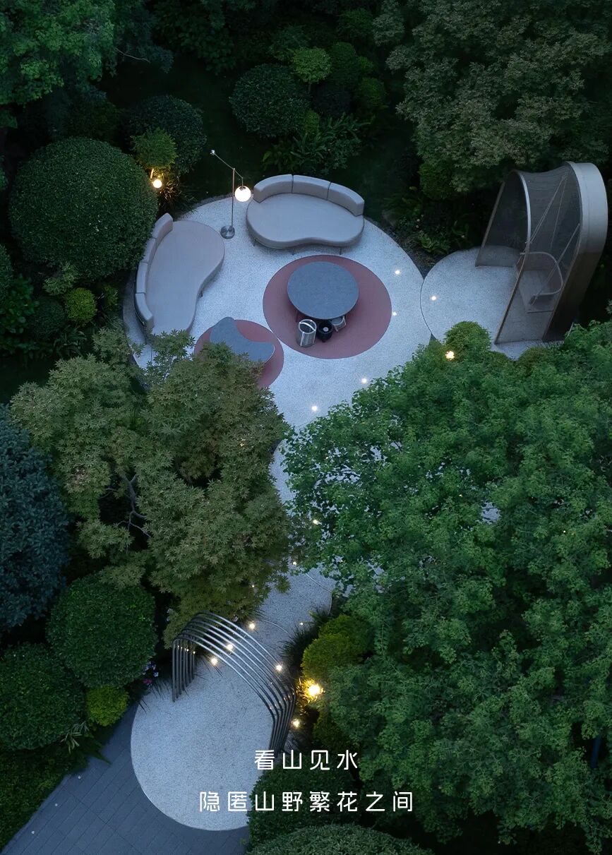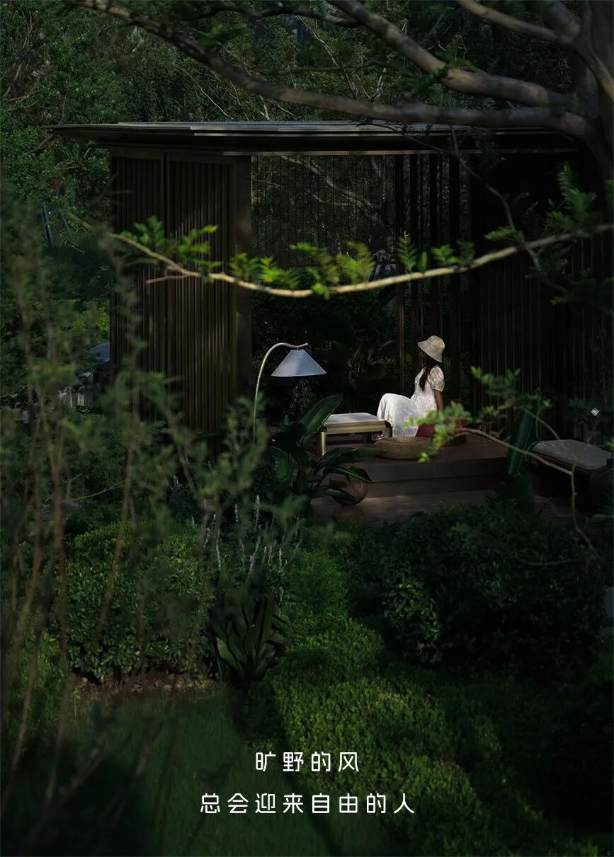 结合诗画大师王维《千岩万壑图》中的山境氛围,既有山林、瀑布、洞天的自然体验,也有洽谈会客、森林秘境、水岸远眺的生活空间。规划采用传统园林,收放自如的布局,形成“一轴九境六景”,打造十大高定归家场景。