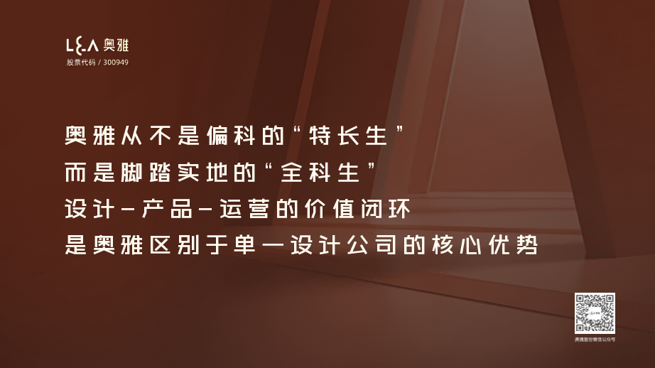 三者环环相扣、互为支撑:设计为产品赋能,产品为运营奠基,运营又反向驱动设计迭代。正是这套系统化的价值闭环,让奥雅在存量时代的竞争中,拥有了区别于单一设计公司的核心优势。
