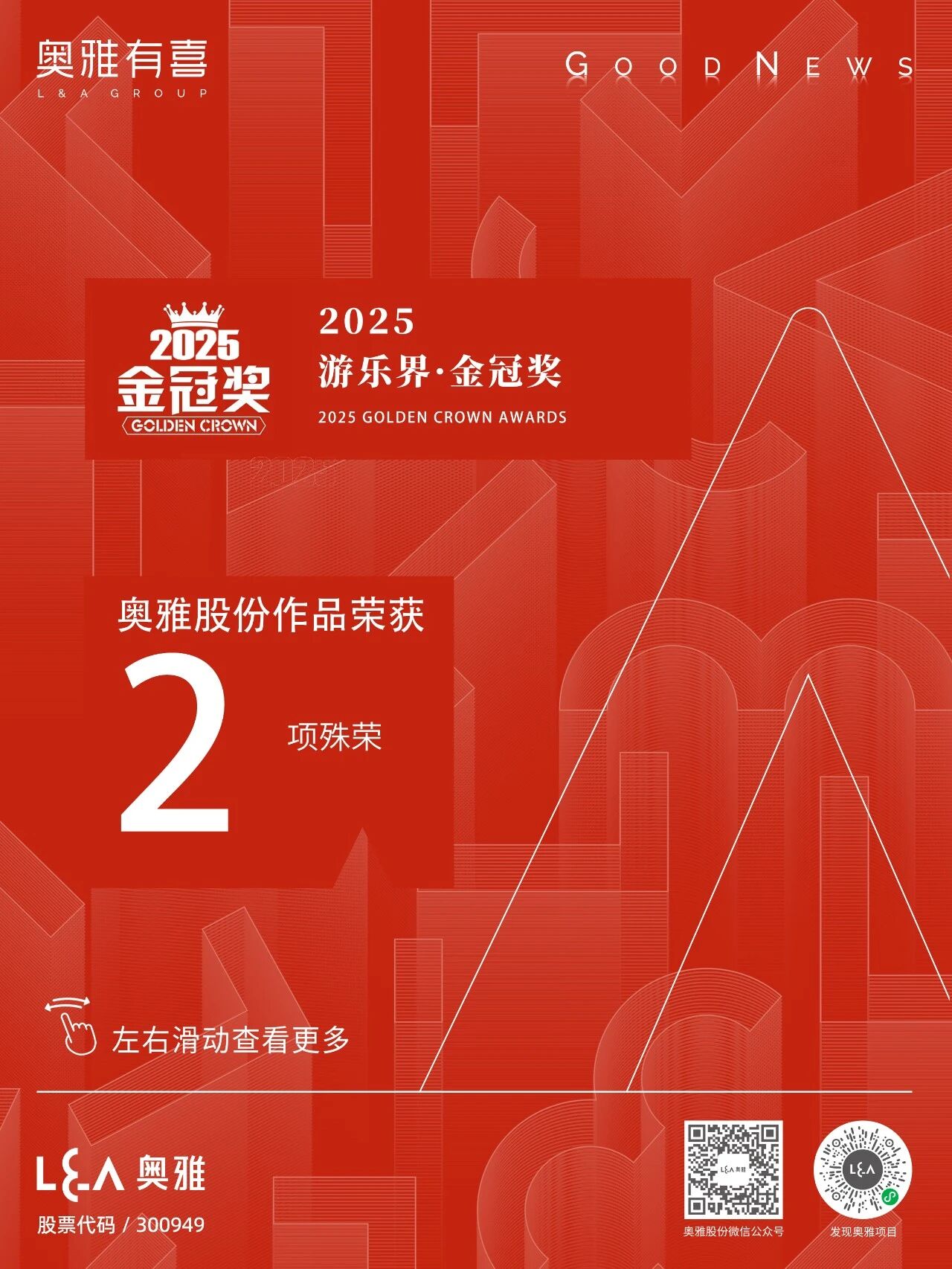 近日,2025游乐界·金冠奖正式揭晓,奥雅股份(股票代码:300949)凭借在文旅领域深厚积淀和创新实践,一举斩获两项荣誉。此次载誉,既是对奥雅股份深耕亲子文旅赛道的匠心坚守与持续探索的权威佐证,更是对其赋能文旅产业创新升级、推动行业高质量发展的价值认可与表彰。