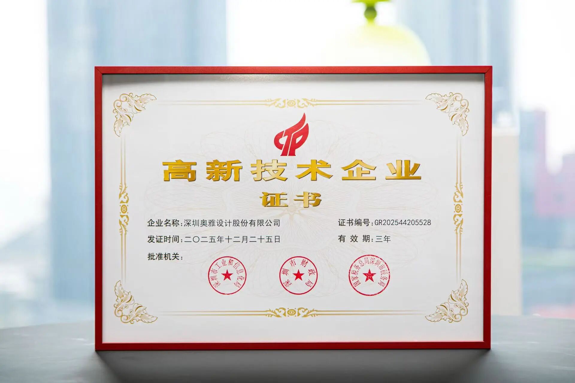近日,奥雅股份(股票代码:300949)成功通过深圳市科技创新委员会、深圳市财政委员会、深圳市国家税务局、深圳市地方税务局组织的专家评审,再度荣获“国家级高新技术企业”称号。此前,奥雅股份上海公司亦同步获评国家级高新技术企业,实现集团核心区域创新资质双认证。
